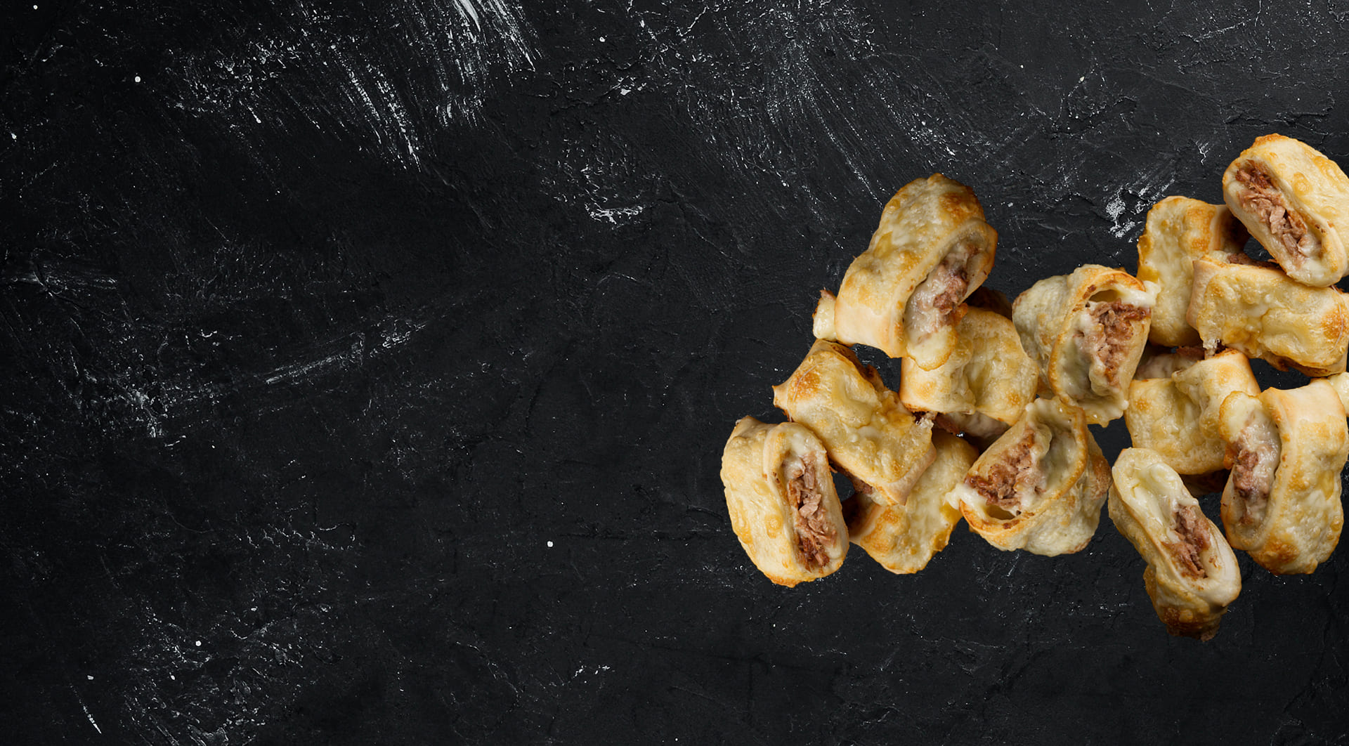 Frischer Teig, Thunfisch, Zwiebeln, Gouda-Käse